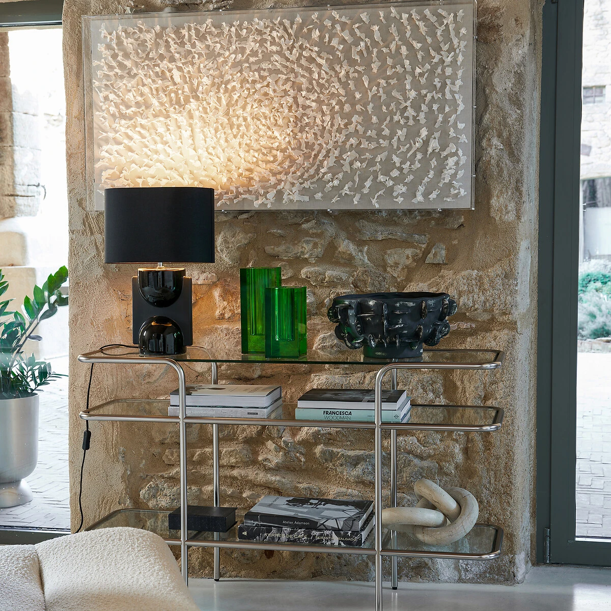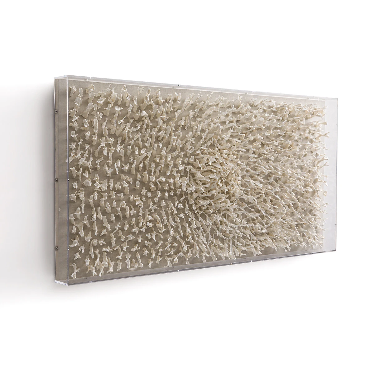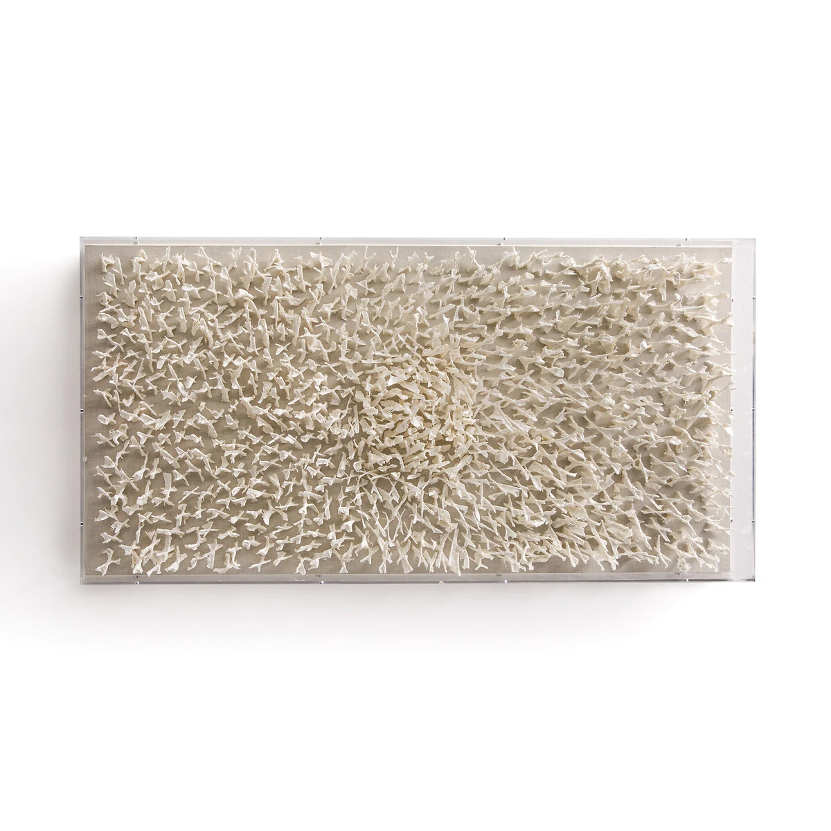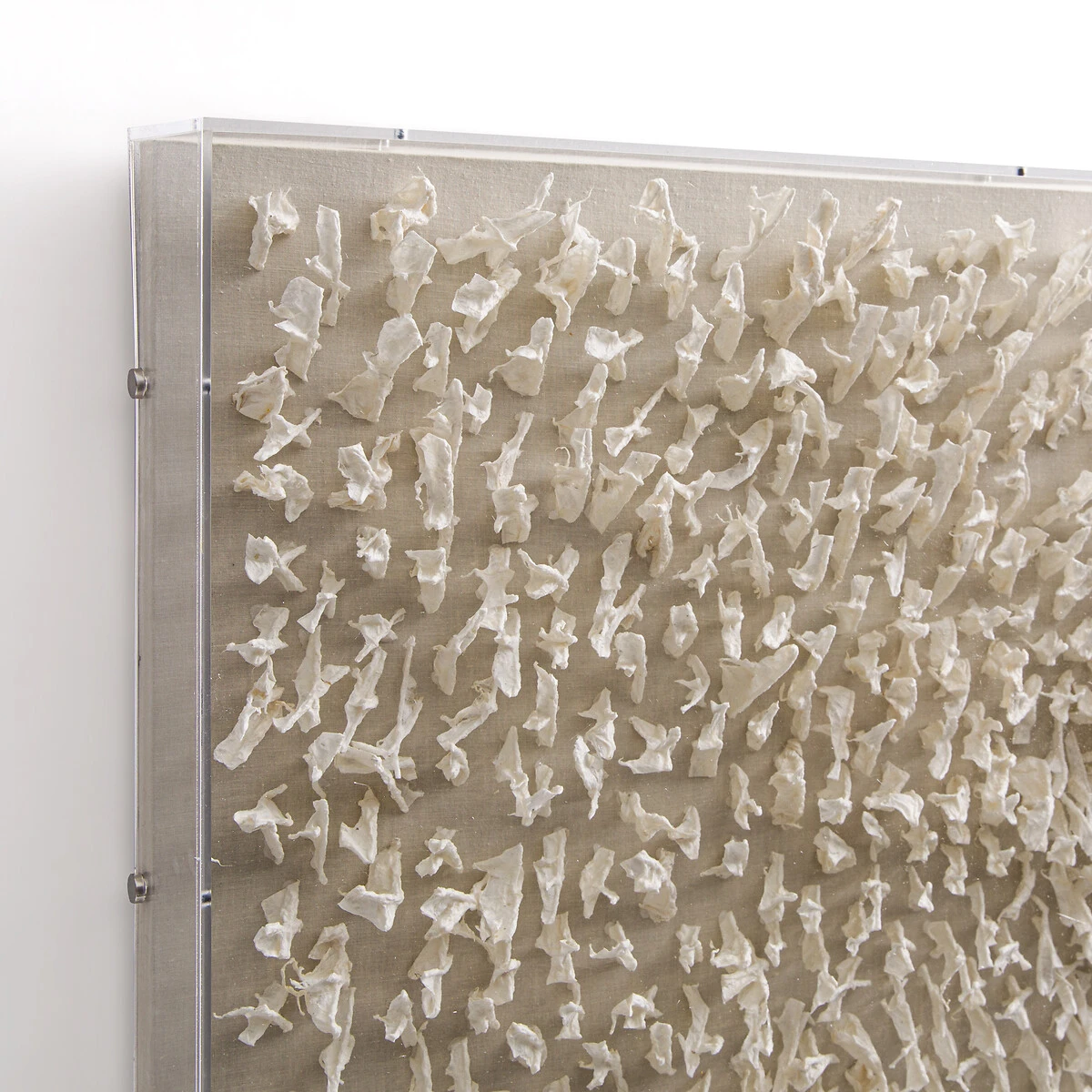 Art mural en papier mâché sous plexiglass, Sudjo blanc AM.PM
