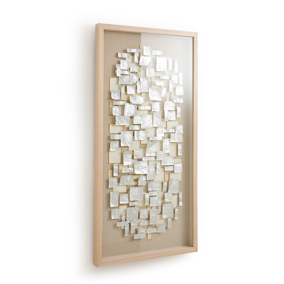 Les coloris neutres fond ressortir et chatoyer les feuilles argentées. Le cadre en pin, fermé par un vitrage, peut être accroché verticalement ou horizontalement. Chaque pièce est unique.