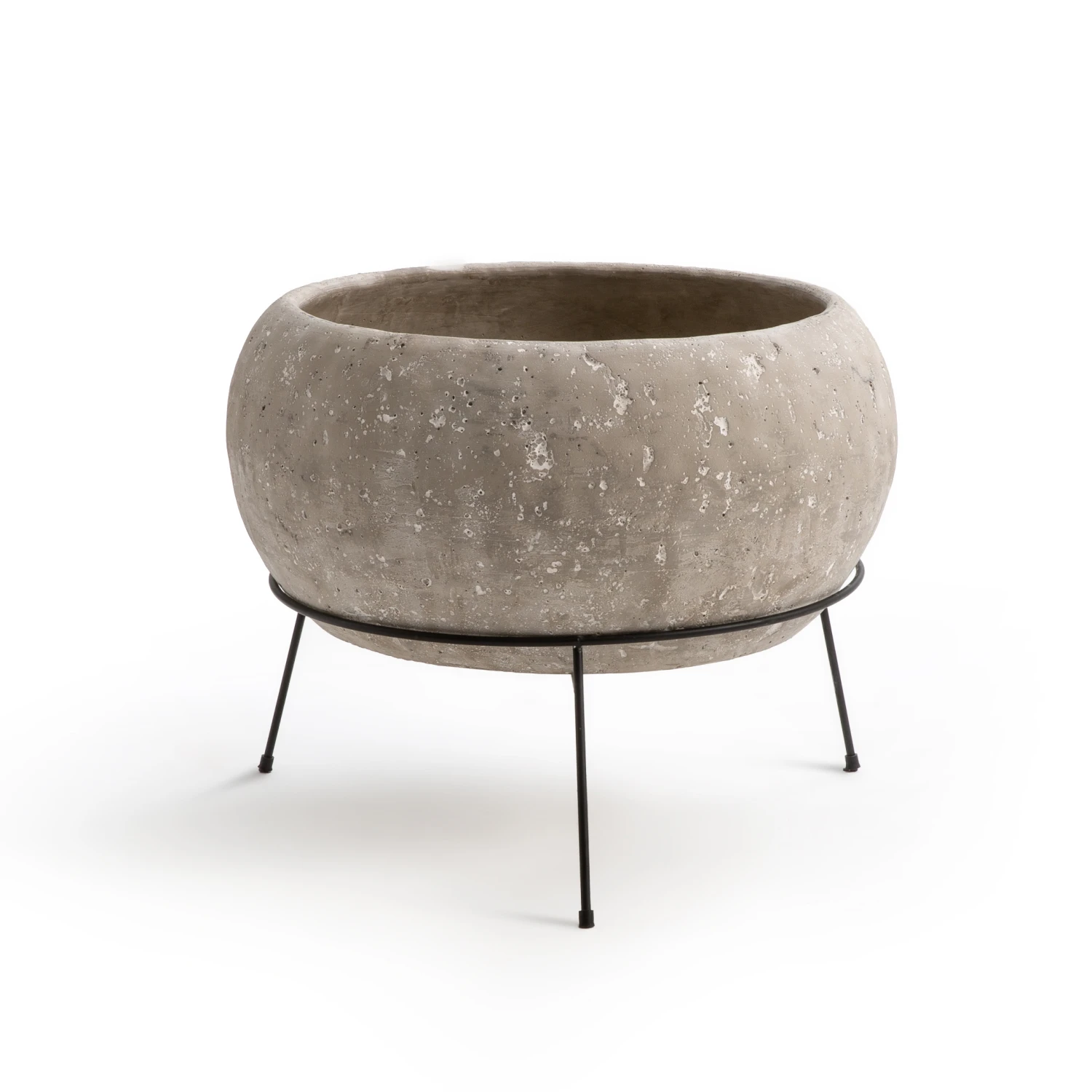 Tout en rondeur ce cache-pot Ollam offre un contraste entre le côté brut du pot qui semble posé en toute légèreté sur support en métal.