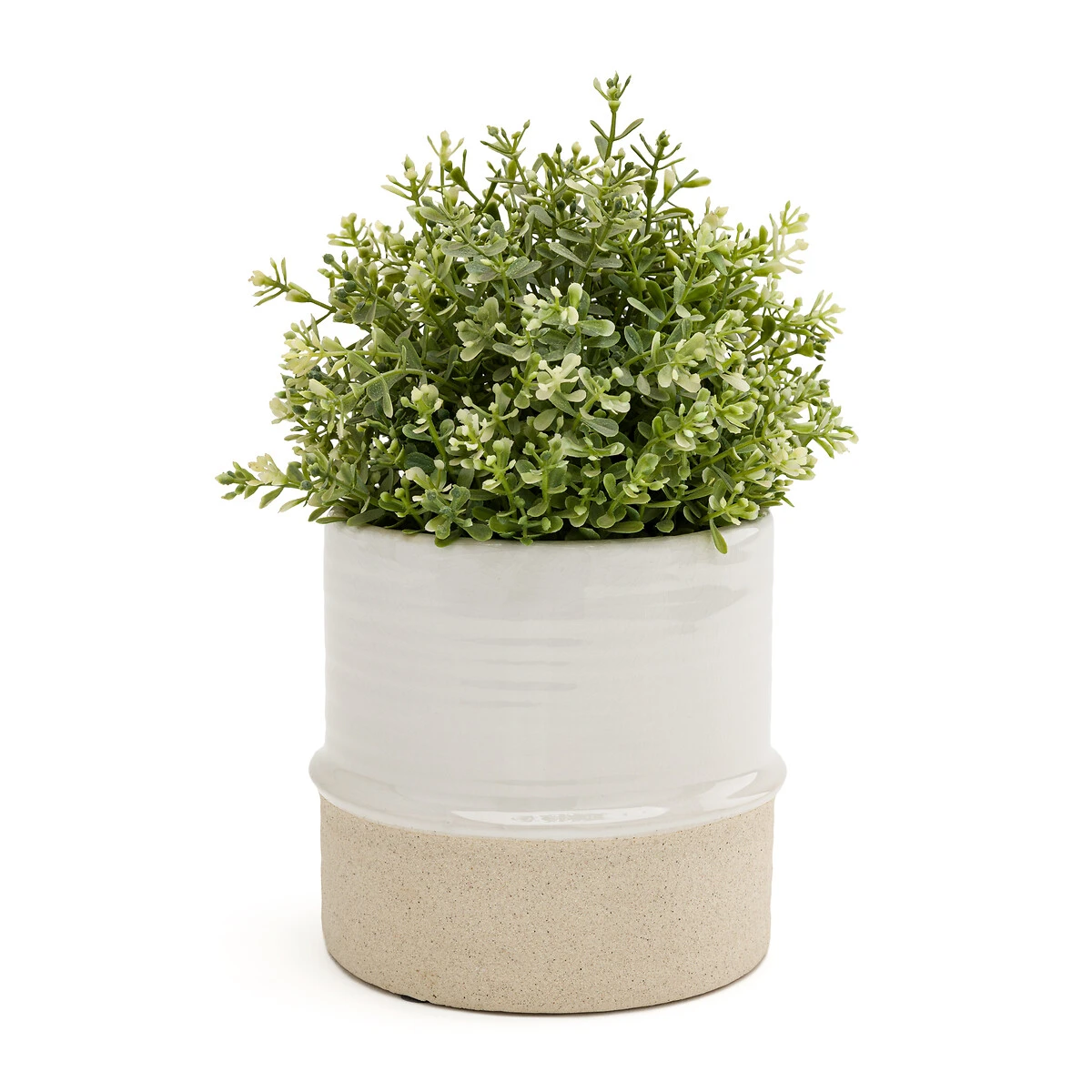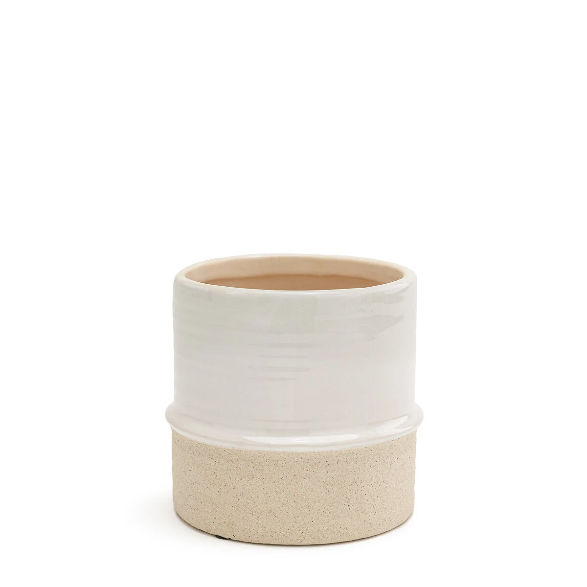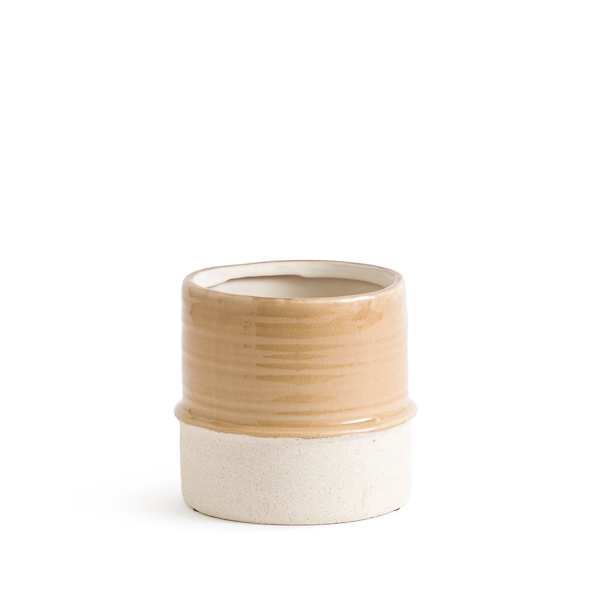 Esprit artisanal pour Malino. Un cache-pot bicolore en céramique avec un fond irrégulier et un dessus en émaillage pour un effet singulier.