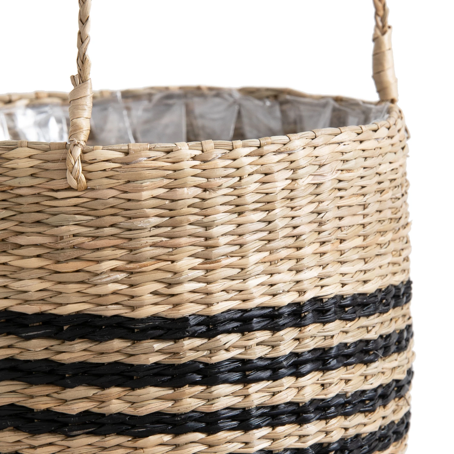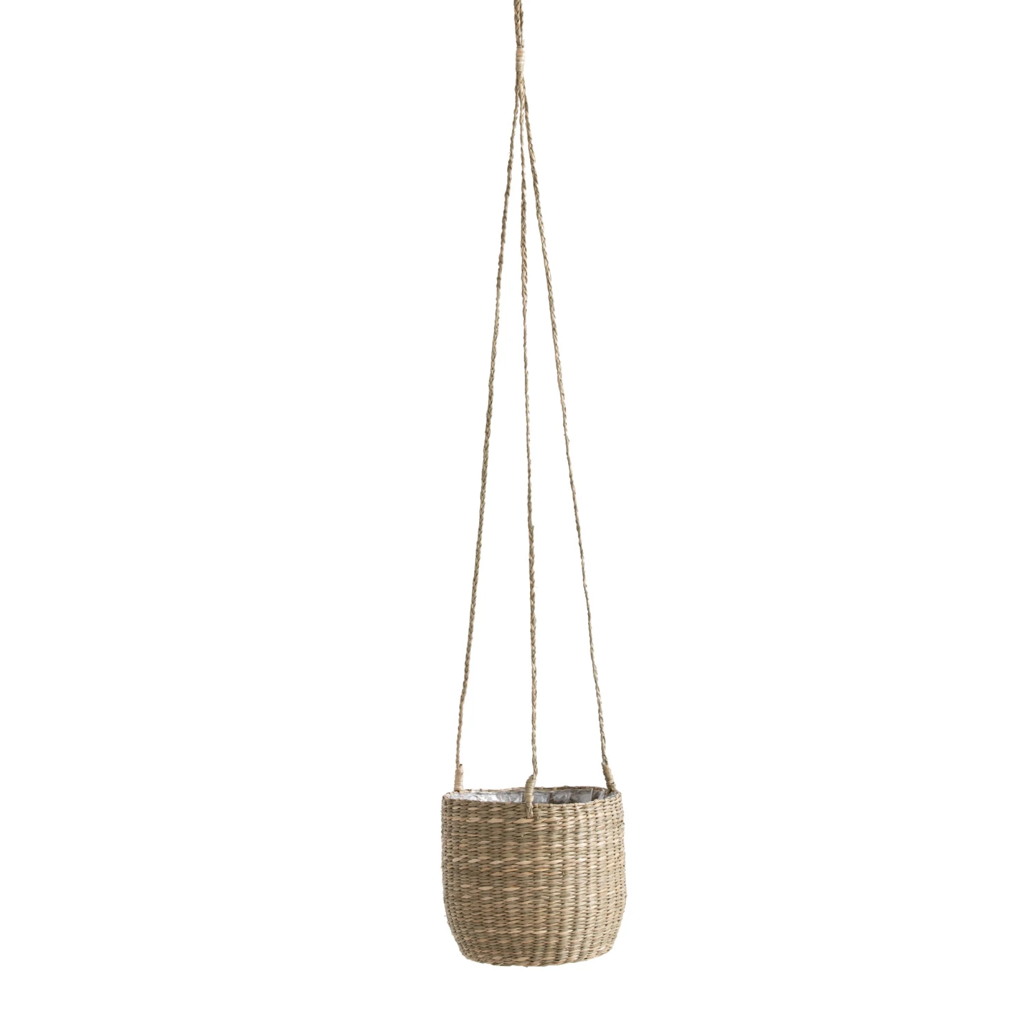 - • Cache-pot à suspendre en herbier tressé avec plastique de protection à l’intérieur • Corde en sisal pour le suspendre : longueur 60 cm • 2 coloris