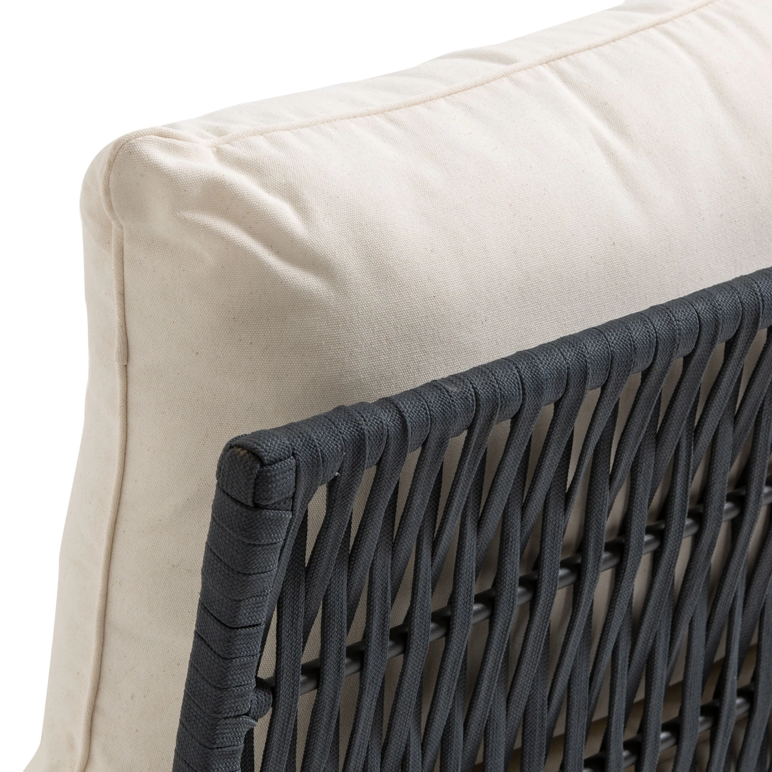 • Coussins d’assise et de dossier en toile tissée 100% polyester (300g/m2) résistant aux UV. Nous vous conseillons quand même de rentrer vos coussins l’hiver.