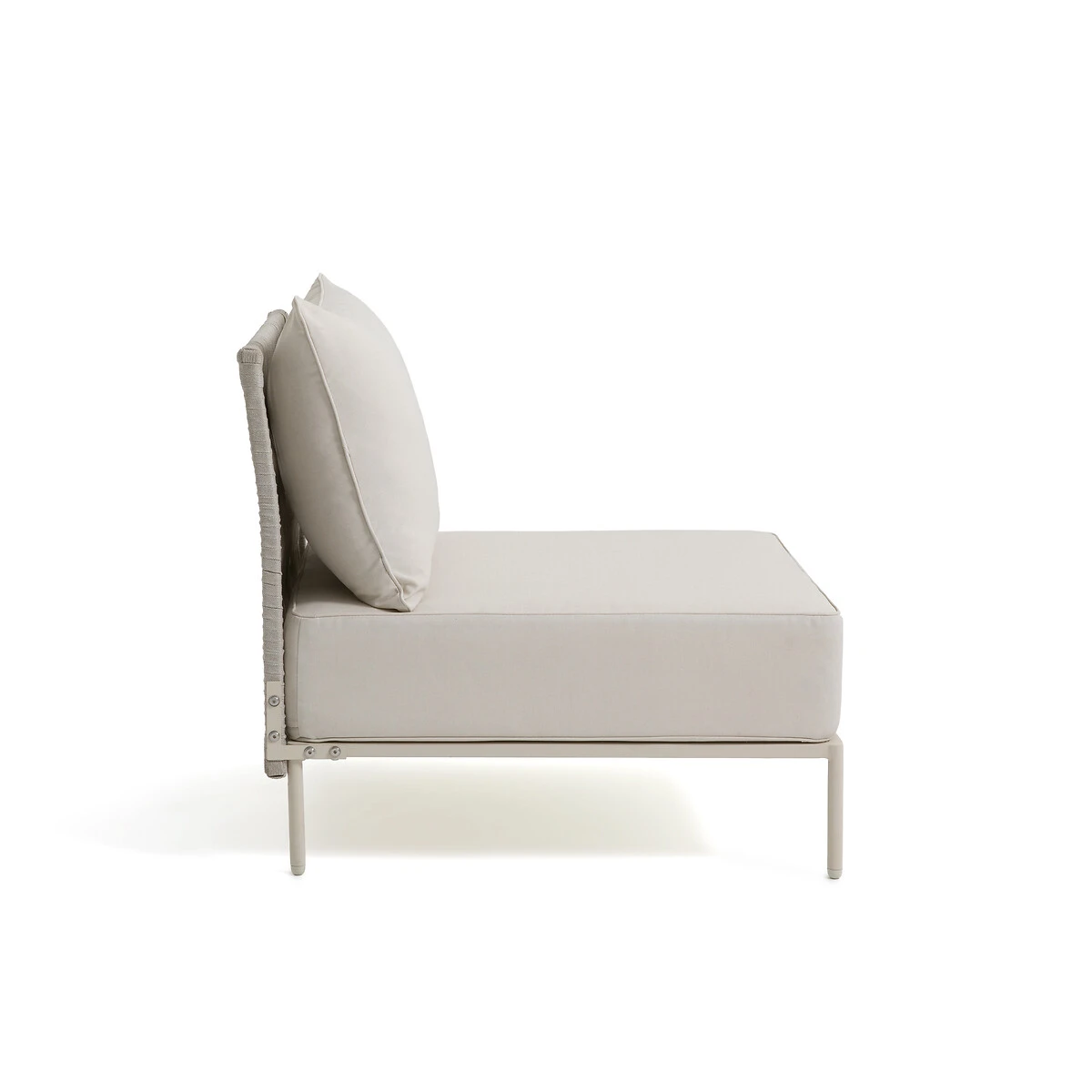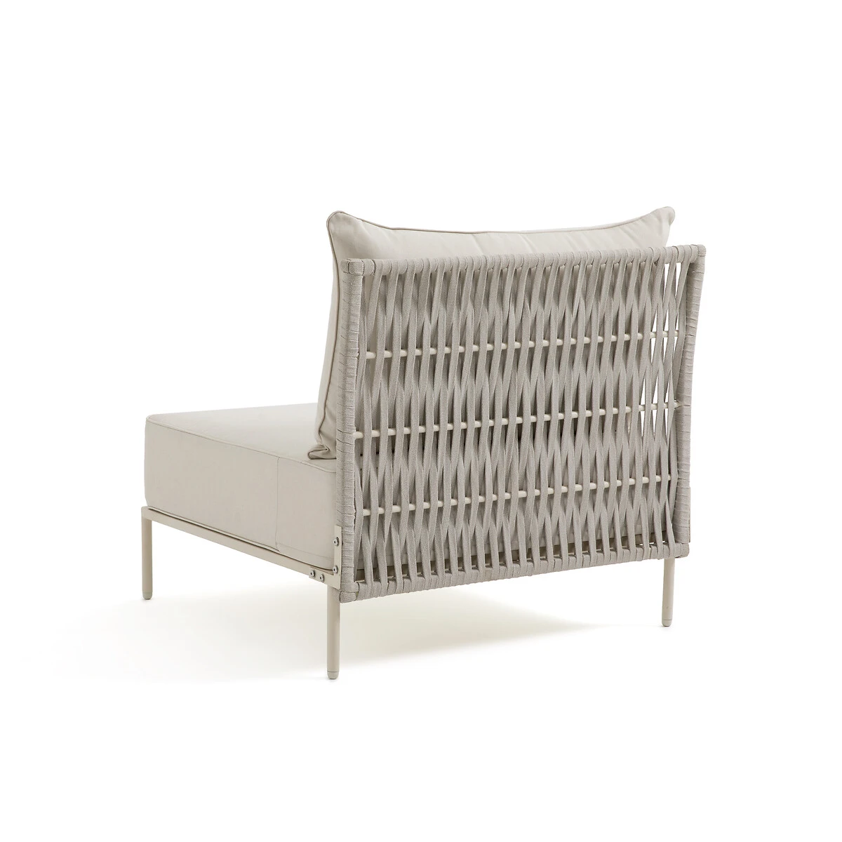 Dossiers et accoudoirs sont tressés de manière artisanale et les coussins d’assise et de dossier sont en toile tissée résistant aux UV. Retrouvez la méridienne assortie sur laredoute.be.