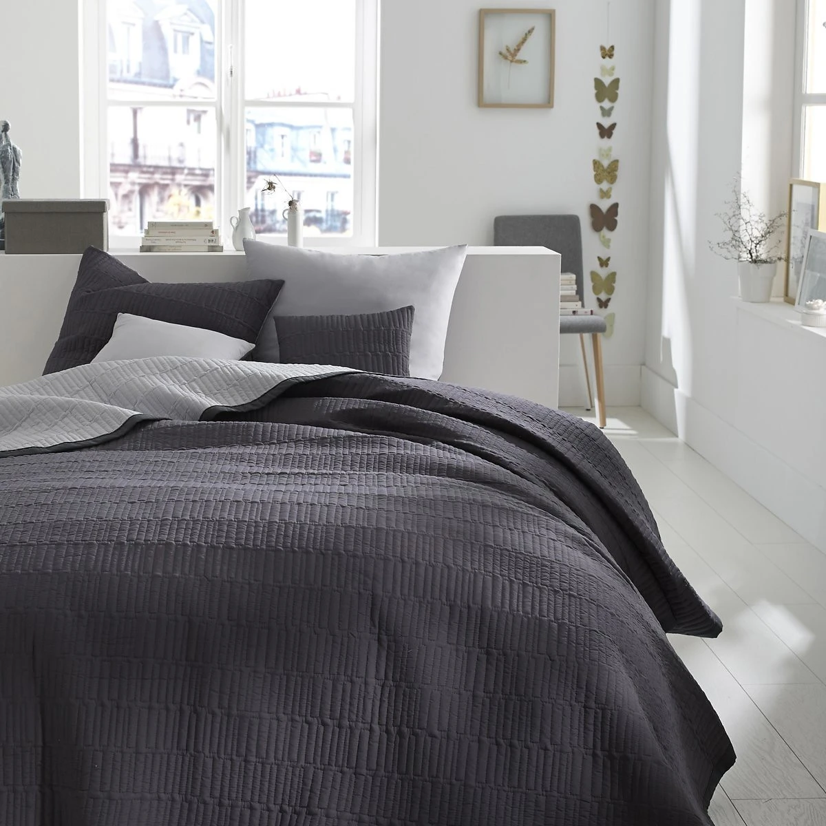 Couvre-lit matelassé, Aima gris clair/gris foncé SO’HOME