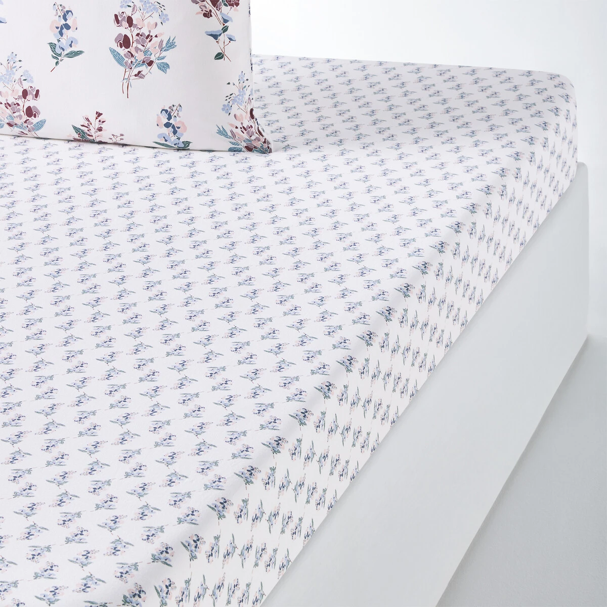 Drap-housse coton lavé, Jeanne imprimé fond blanc LA REDOUTE INTERIEURS