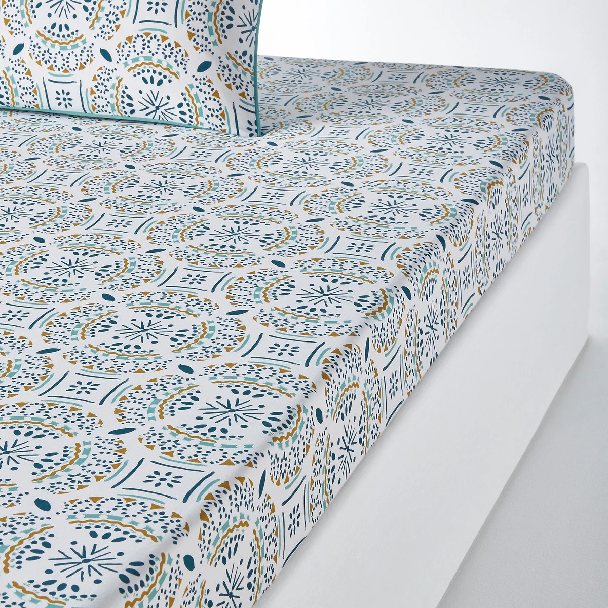 Drap housse pur coton, Keyiah imprimé bleu/vert LA REDOUTE INTERIEURS