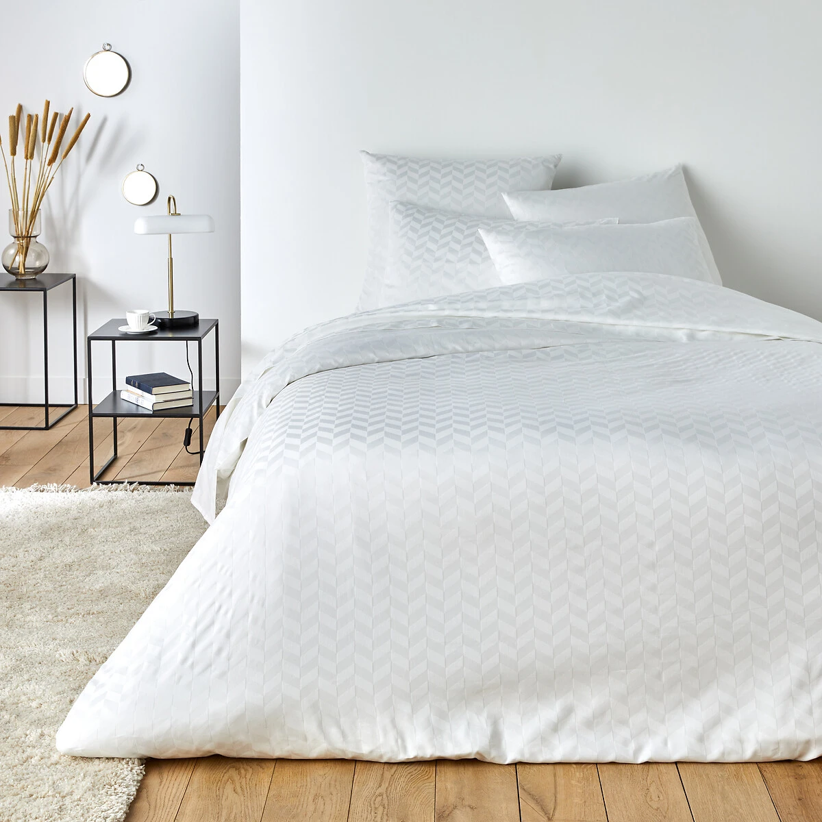 Drap plat satin de coton chevron, Scenario blanc LA REDOUTE INTERIEURS