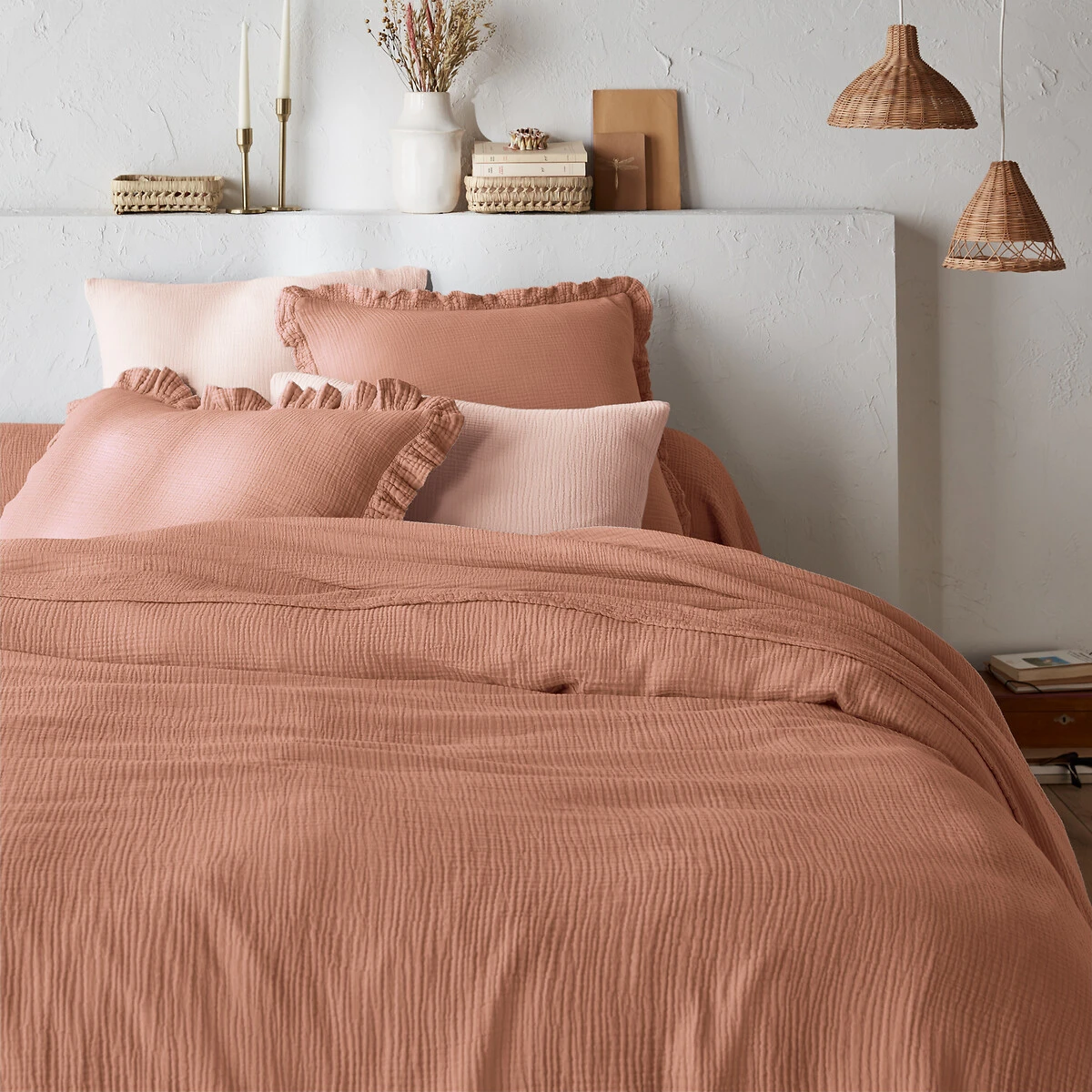 La gaze de coton est légère, très souple et ultra douce. Délicatement gaufrée, elle ne nécessite pas de repassage