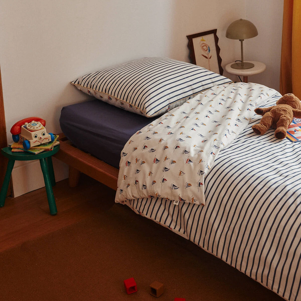 La cape de bain offre le confort de la matière éponge doublée de jersey. Les gigoteuses en jersey, le linge de lit en percale et les langes en gaze de coton sont les garants de nuits paisibles pour toute la famille ! Sans oublier le coffret plaid et doudou, qui fait honneur au point mousse cher à Petit Bateau.