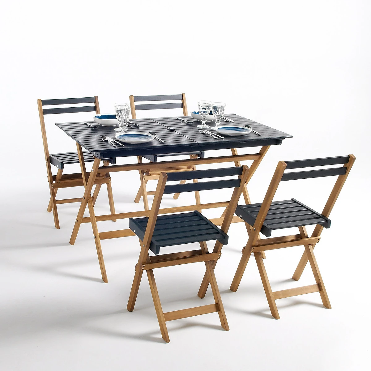 • Ensemble de jardin composé d’1 table forme rectangulaire et de 4 chaises pliantes