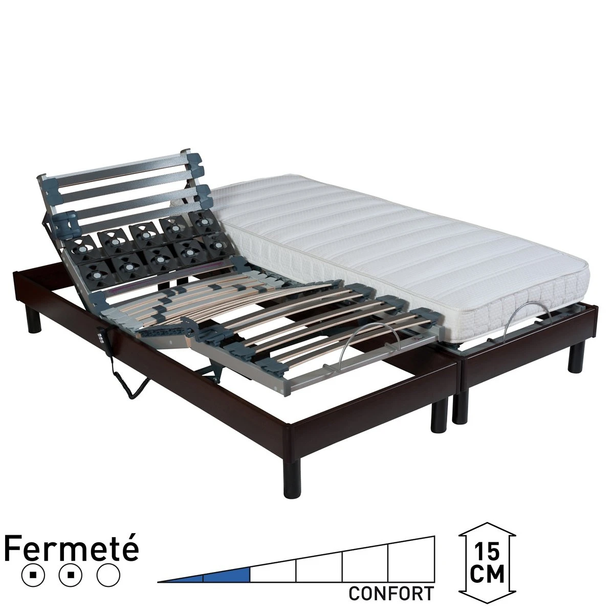 Son sommier à 5 plans articulés, motorisé et télécommandé est conçu pour vous apporter confort et maintien.