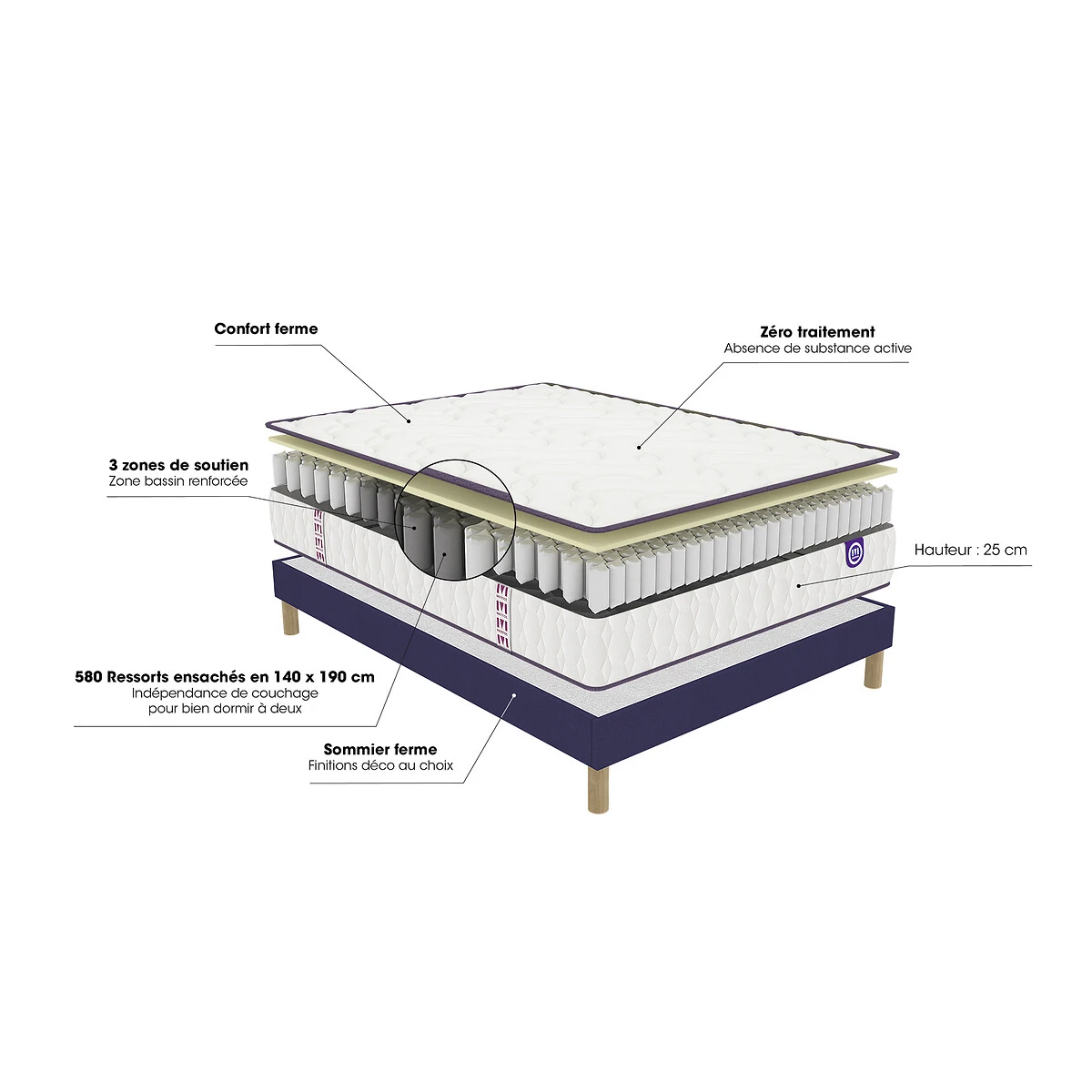 • Type de matelas : Ressorts ensachés, 3 zones de confort différenciées