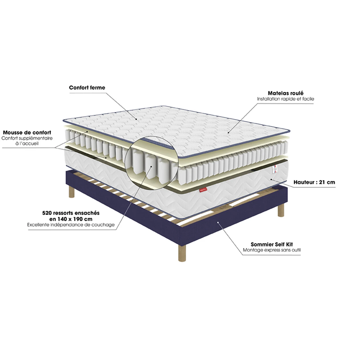 Cet ensemble vous offrira un confort unique et un bon soutien pour un sommeil réparateur. Fabriqué en France.