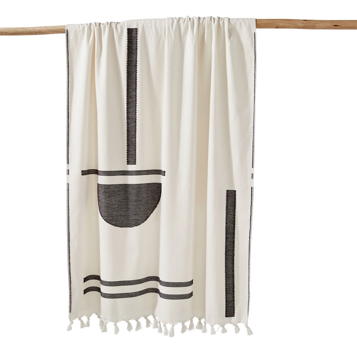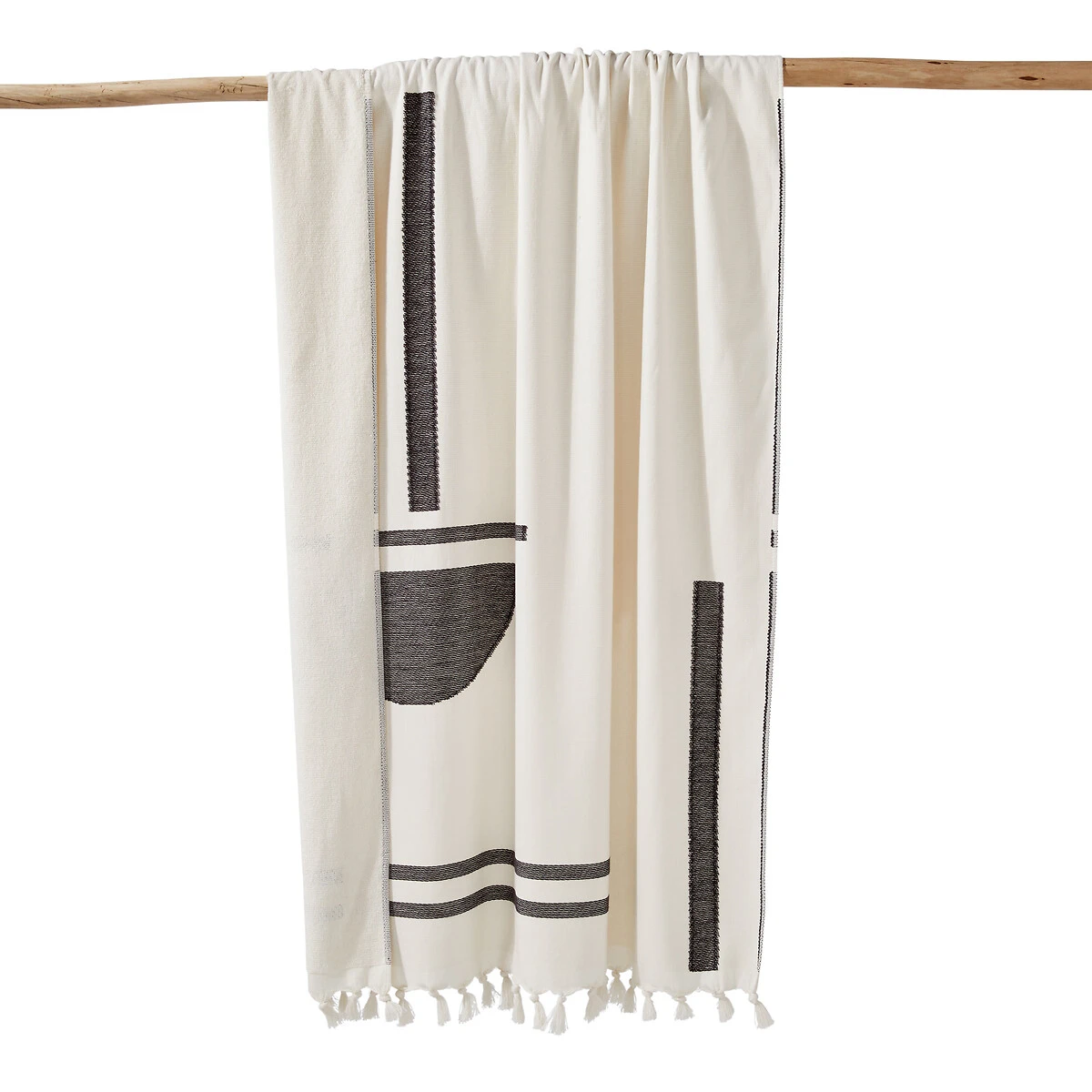 Fouta XL coton, doublée éponge 360 g/m2, Goboa ecru/noir LA REDOUTE INTERIEURS