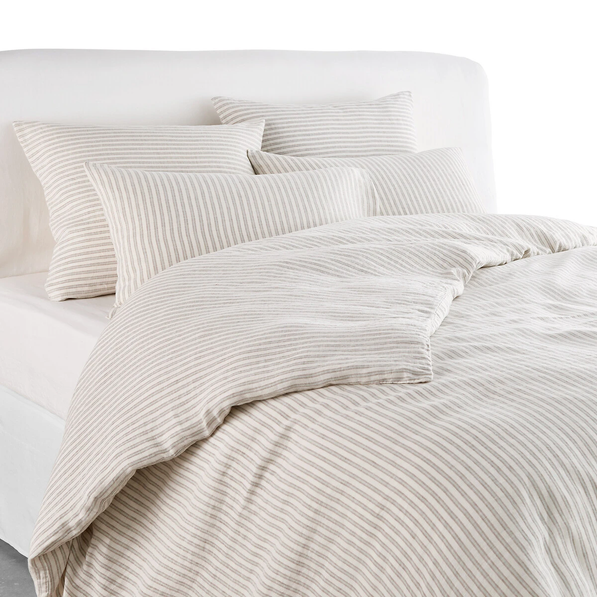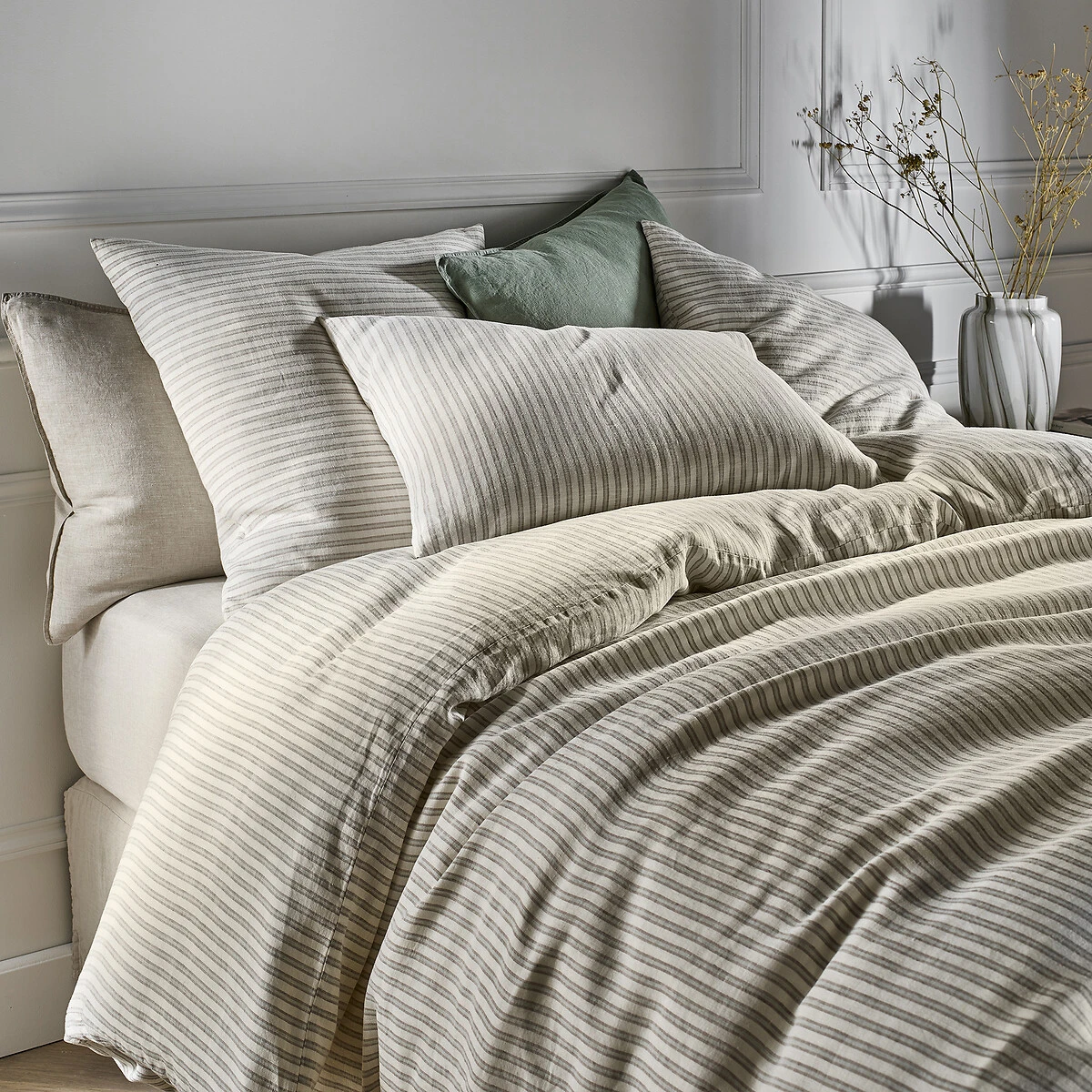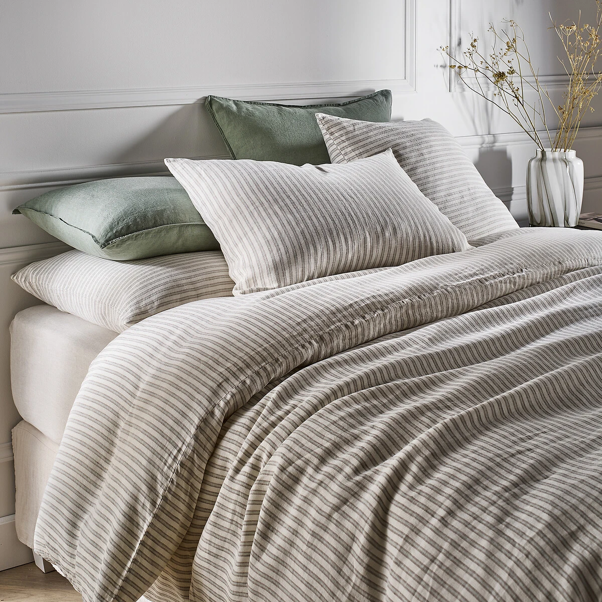 Housse de couette lin lavé, Kalaya ecru/vert de gris/café AM.PM