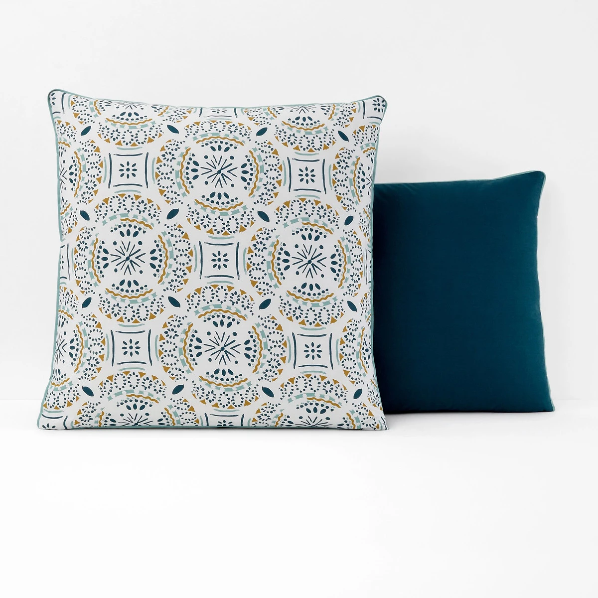 • Recto imprimé motifs ethniques, verso uni coloris émeraude