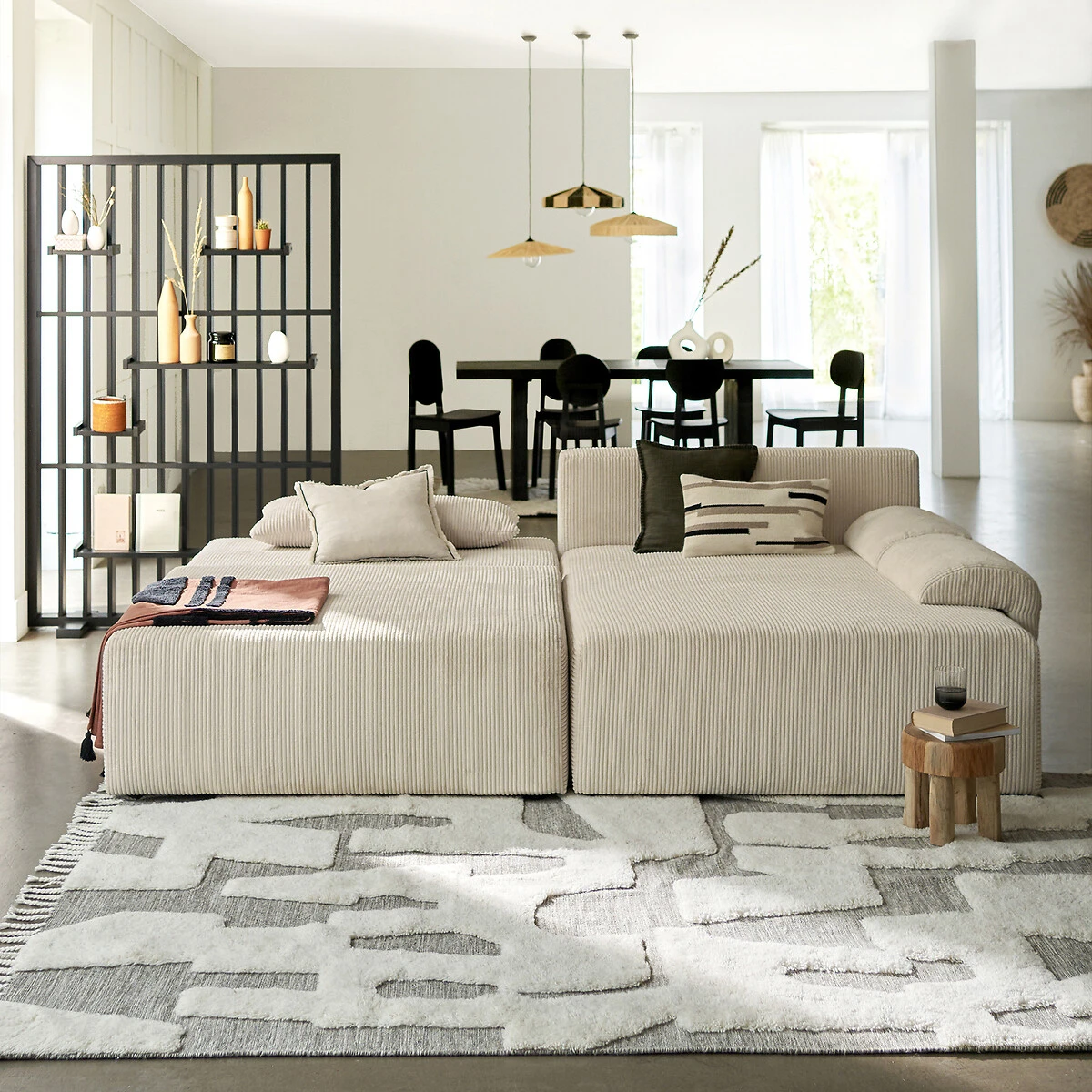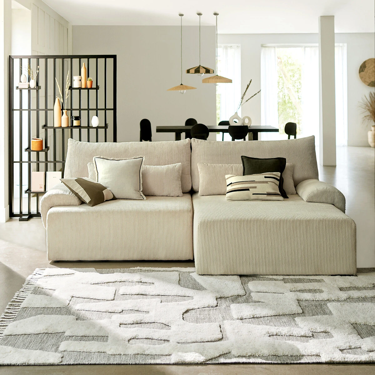 Motifs abstraits et couleurs chaudes : voici Kahama. Une housse de coussin en lin et coton pour une ambiance subtilement ethnique. Une création La Redoute Intérieurs.