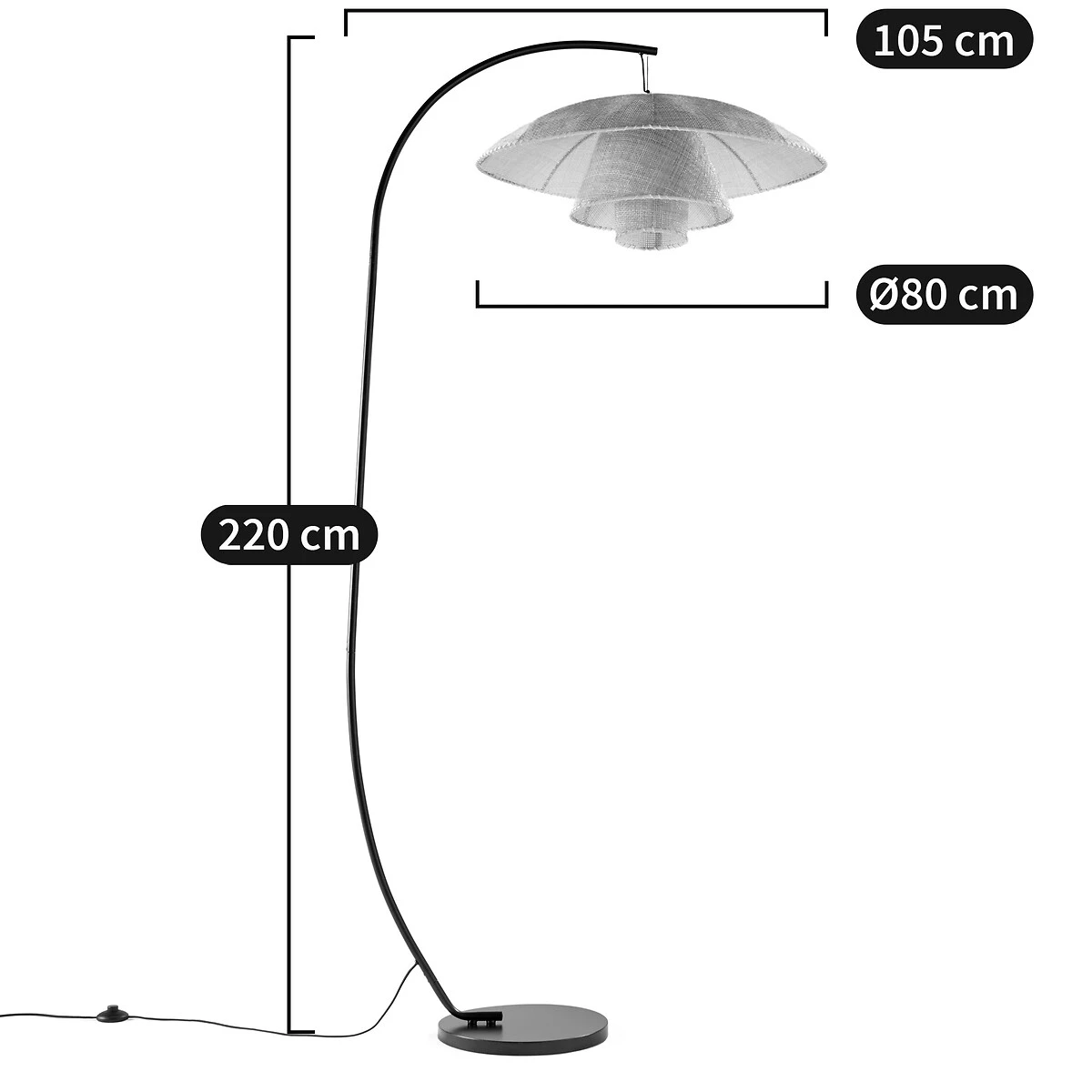 Lampadaire arc métal acier et rotin, Lola naturel/noir LA REDOUTE INTERIEURS