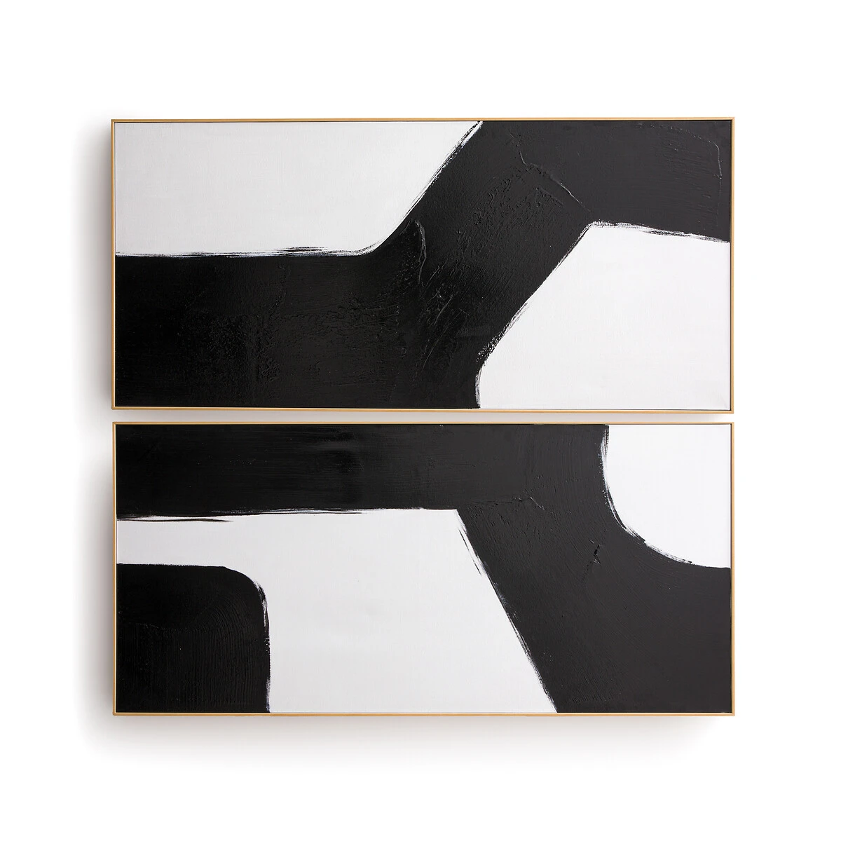 Lot de deux toiles peintes à la main, Dopio noir/blanc AM.PM