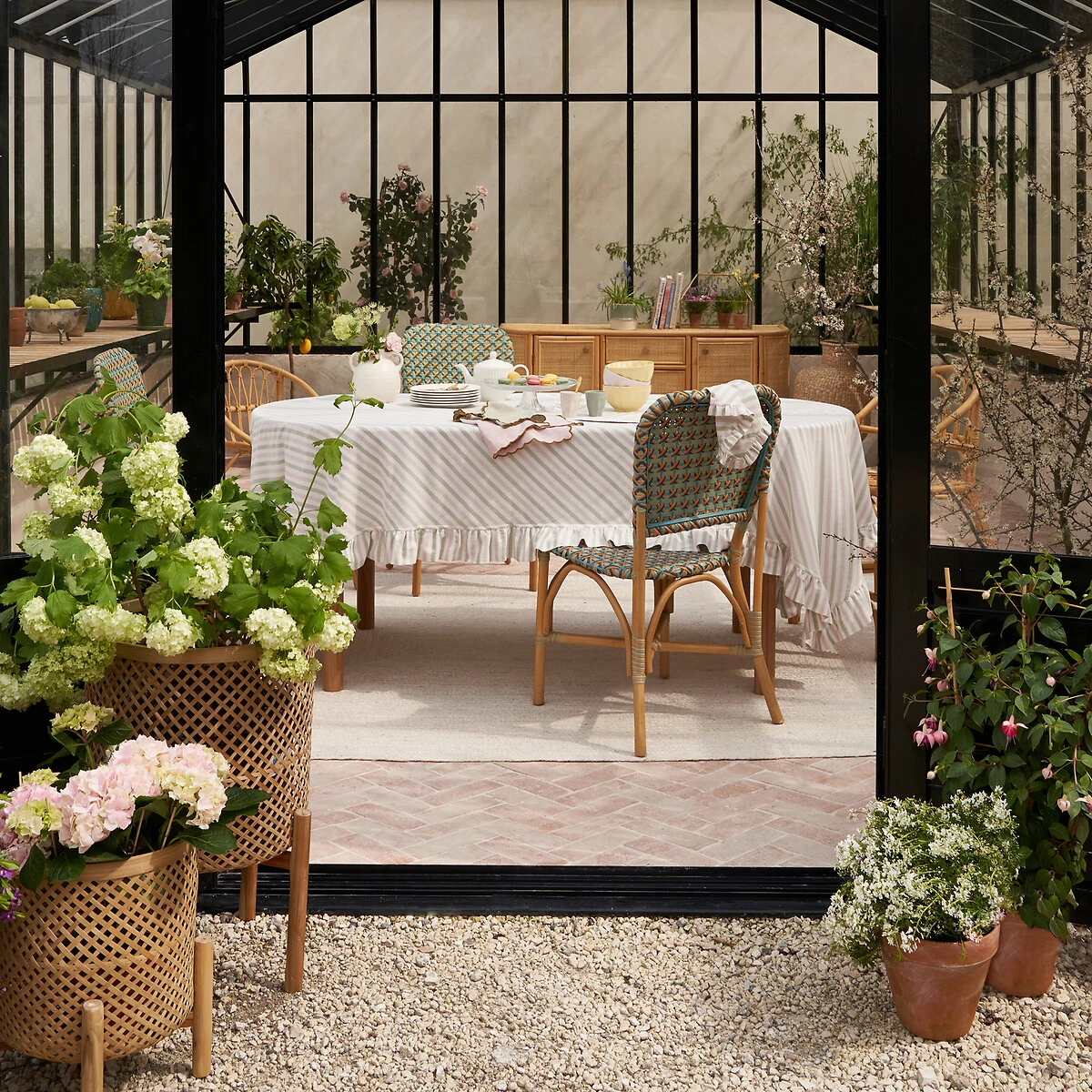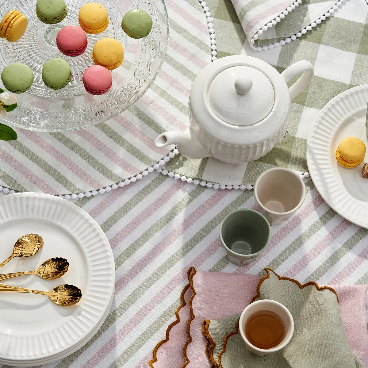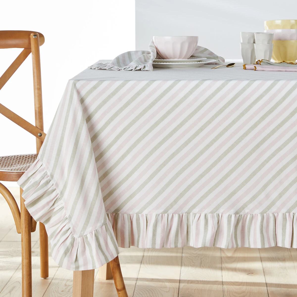 Nappe rayée coton tissé-teint, Bridget blanc/vert/lilas LA REDOUTE INTERIEURS