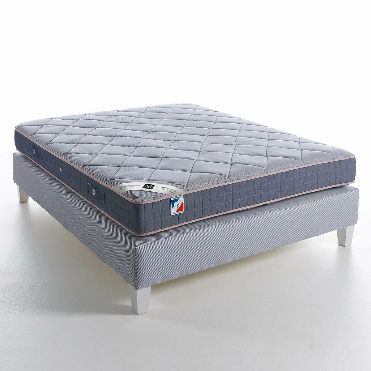 • Enveloppe sergé satiné 100% coton, finition passepoil gris