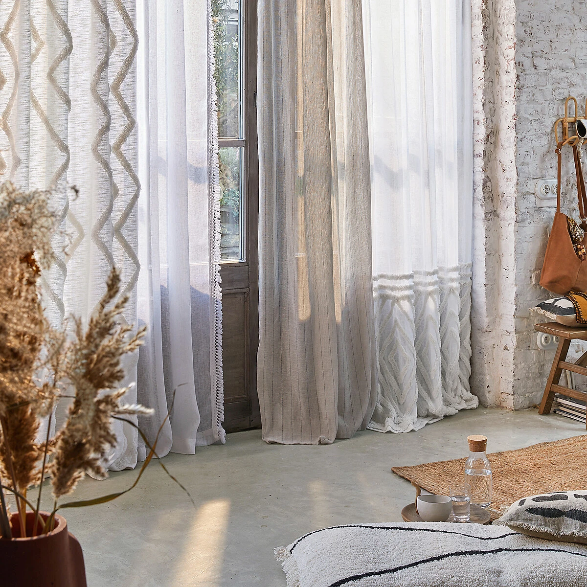 Panneau voilage lin à franges, Pampa blanc LA REDOUTE INTERIEURS