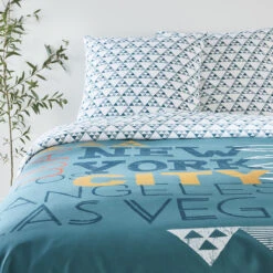 Parure de lit coton, Nyc imprimé fond gris foncé SO’HOME