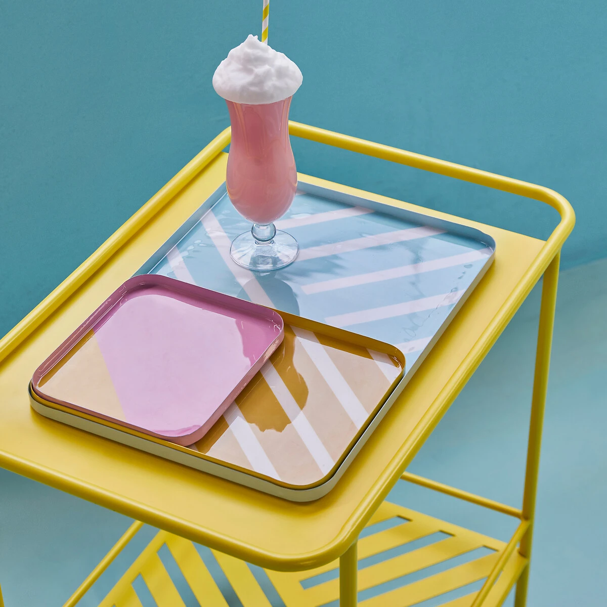 Plateau rectangulaire métal acier motif graphique bleu HELLO BLOGZINE X LA REDOUTE INTERIEURS