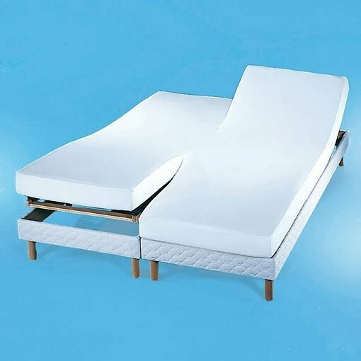 • Drap housse double couchage (lits têtes et pieds relevables) en molleton 100% coton, membrane contrecollée PVC imperméable (240 g/m²)