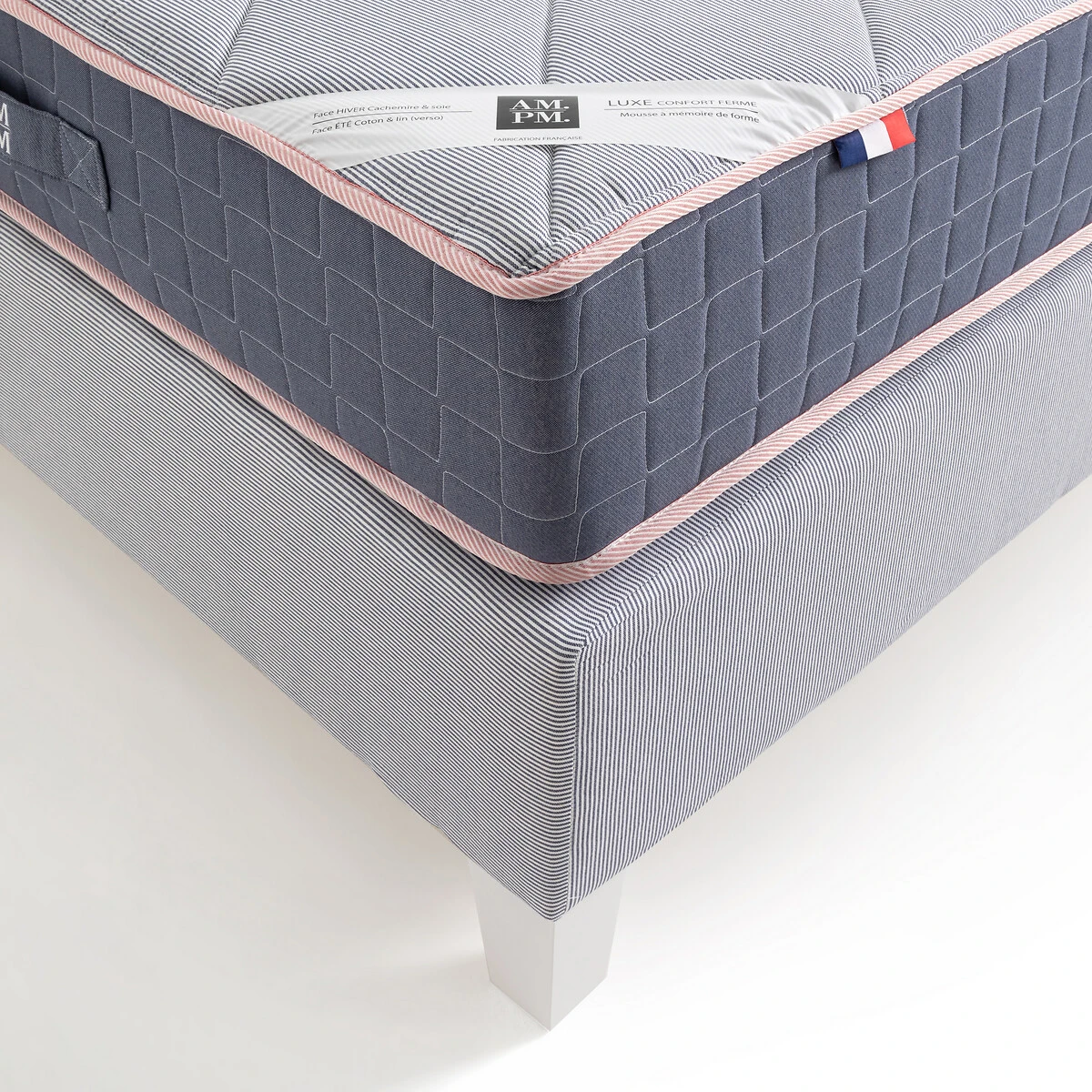 Sommier tapissier lattes H26 cm, Soma rayé bleu AM.PM