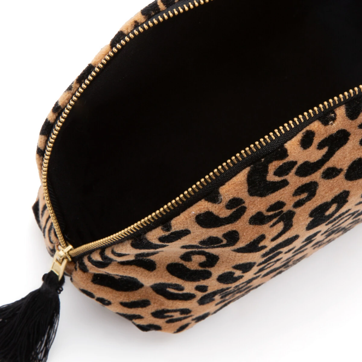 •  Extérieur en velours 100% coton, imprimé léopard